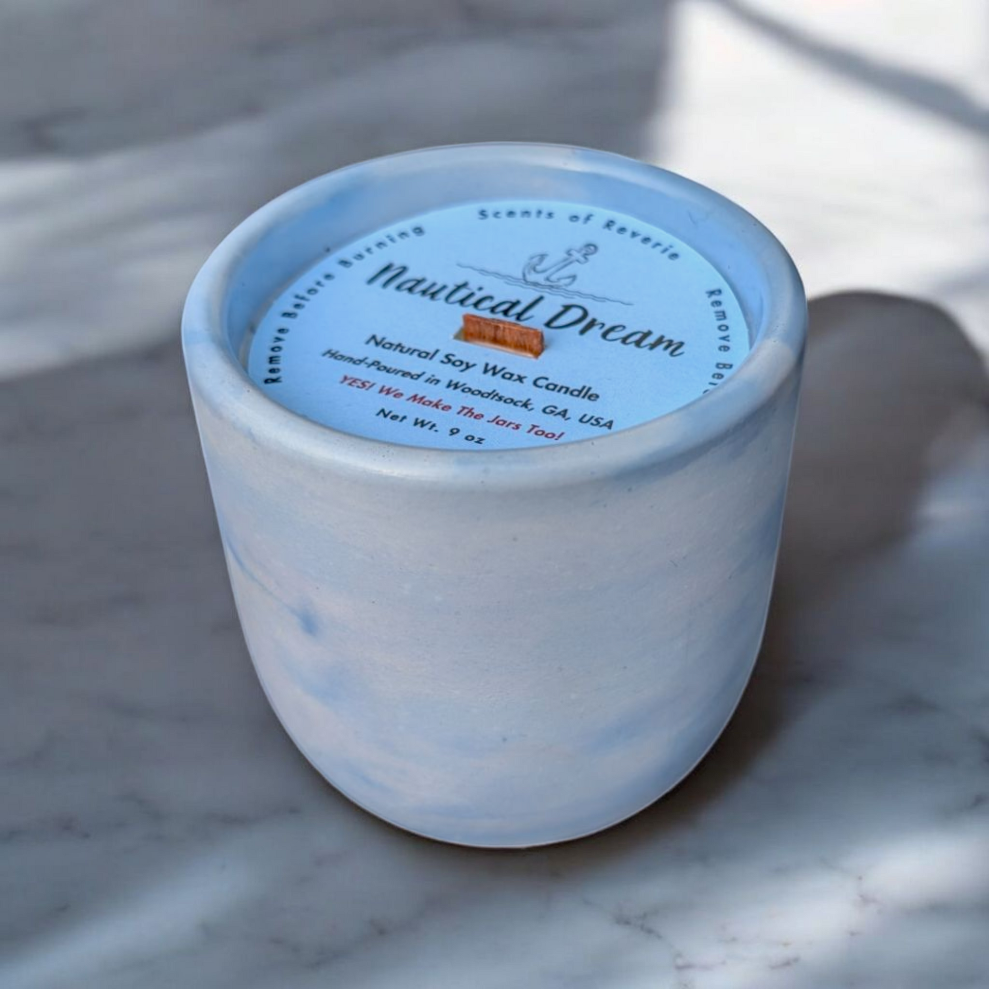 Every Scents of Reverie item is lovingly handcrafted in Kennesaw, GA. As with all handmade products, slight imperfections—like slightly off-center labels/wicks or small markings on the jar—may occur. Rest assured, these do not affect the quality of the candle.