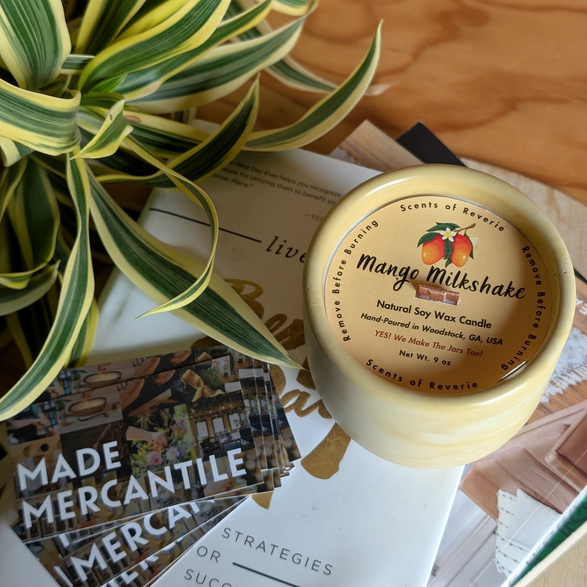 Every Scents of Reverie item is lovingly handcrafted in Kennesaw, GA. As with all handmade products, slight imperfections—like slightly off-center labels/wicks or small markings on the jar—may occur. Rest assured, these do not affect the quality of the candle.