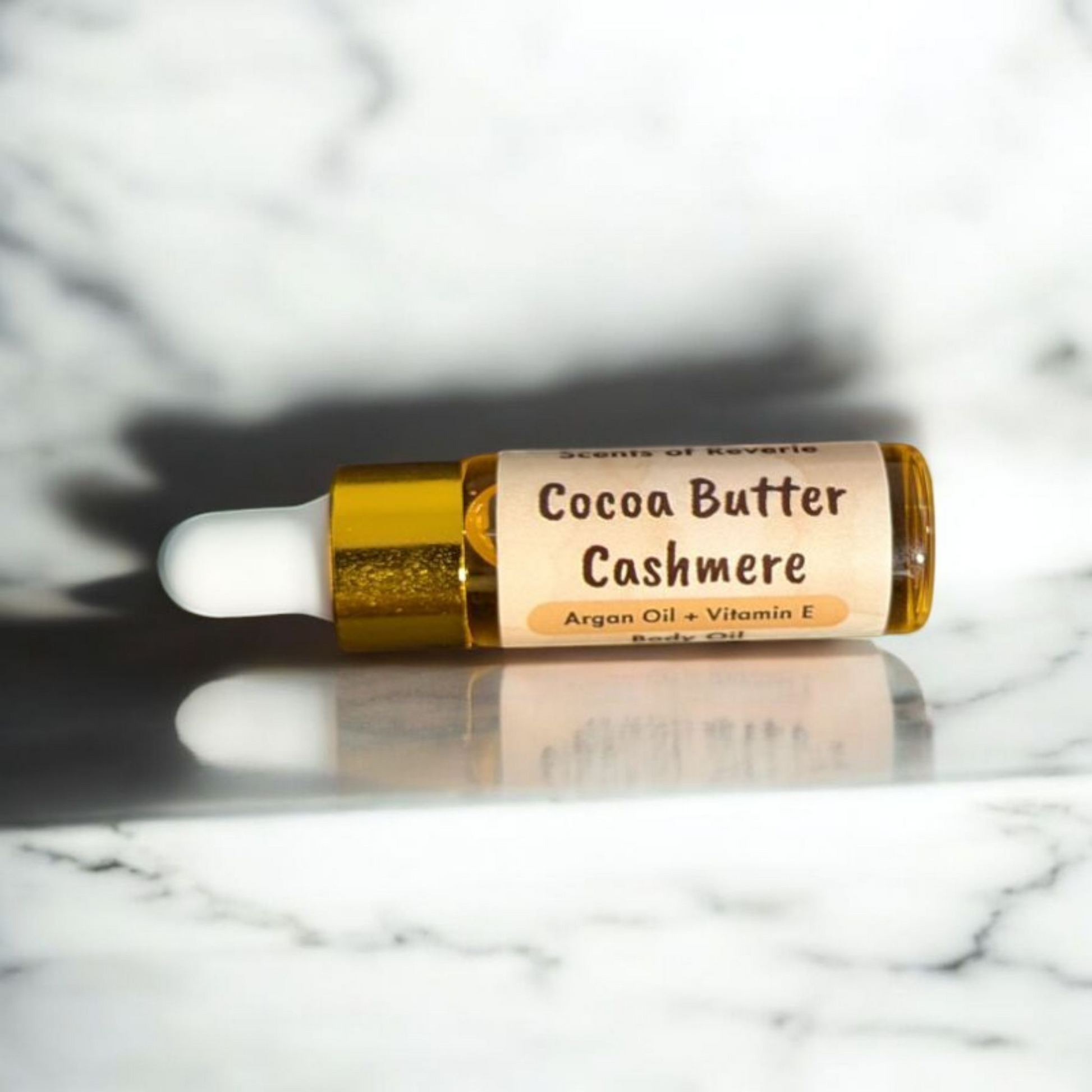 Wrap your skin in the rich, indulgent scent of Cocoa Butter Cashmere. This luxurious body oil combines the creamy softness of cocoa butter with the warmth of cashmere and a touch of tonka bean, creating a smooth, comforting fragrance. The lightweight formula glides effortlessly onto your skin, leaving it deeply moisturized, nourished, and subtly scented with a perfect balance of warmth and sophistication.