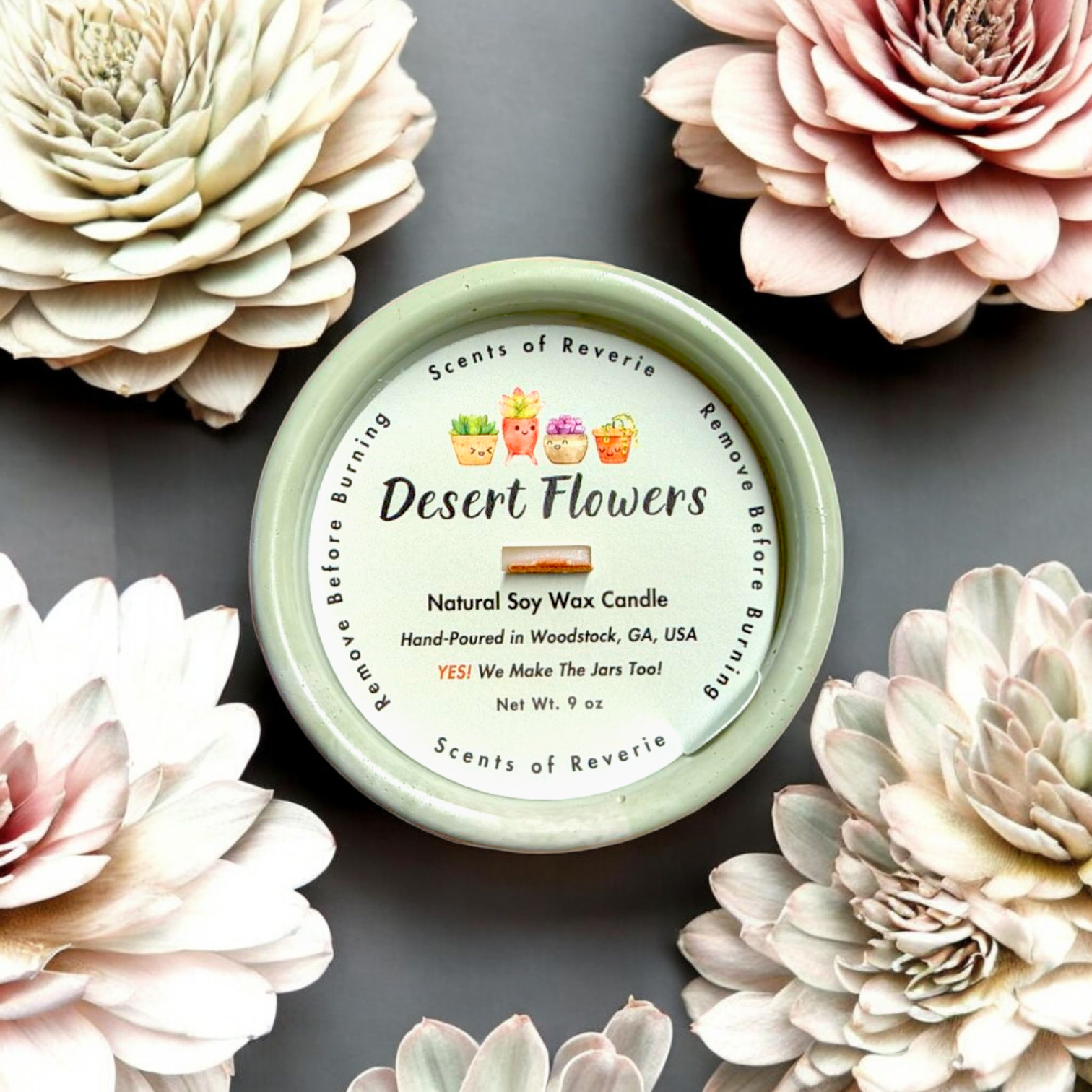Every Scents of Reverie item is lovingly handcrafted in Kennesaw, GA. As with all handmade products, slight imperfections—like slightly off-center labels/wicks or small markings on the jar—may occur. Rest assured, these do not affect the quality of the candle.