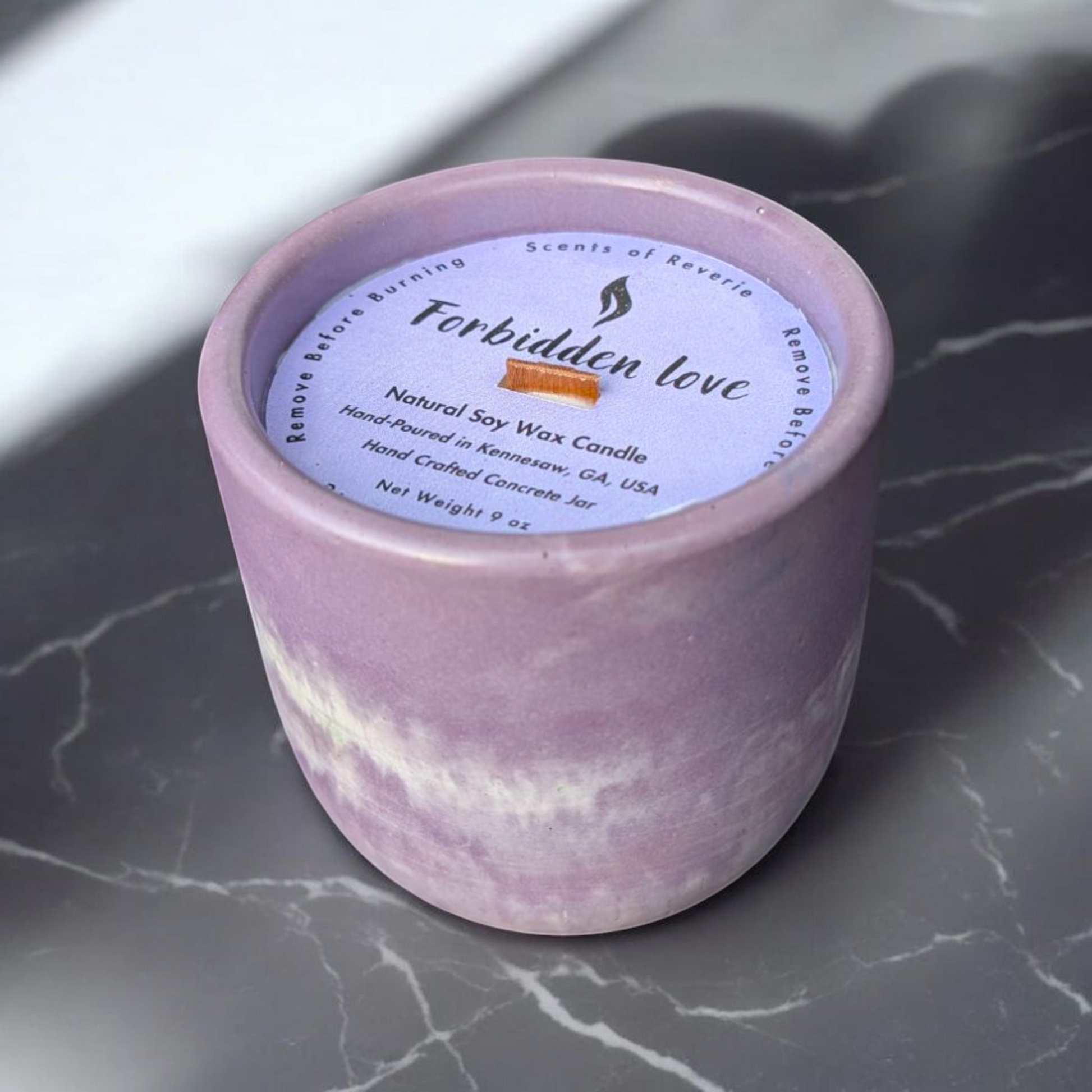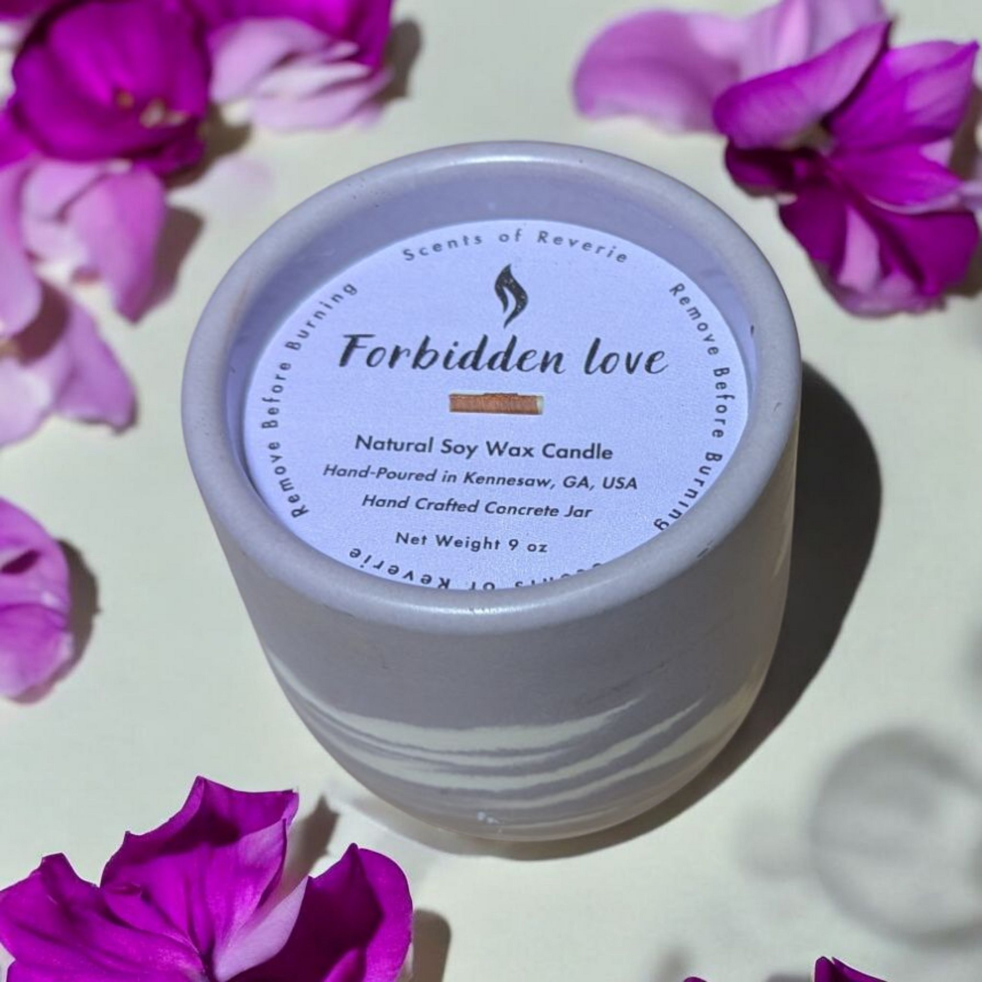 Every Scents of Reverie item is lovingly handcrafted in Kennesaw, GA. As with all handmade products, slight imperfections—like slightly off-center labels/wicks or small markings on the jar—may occur. Rest assured, these do not affect the quality of the candle.
