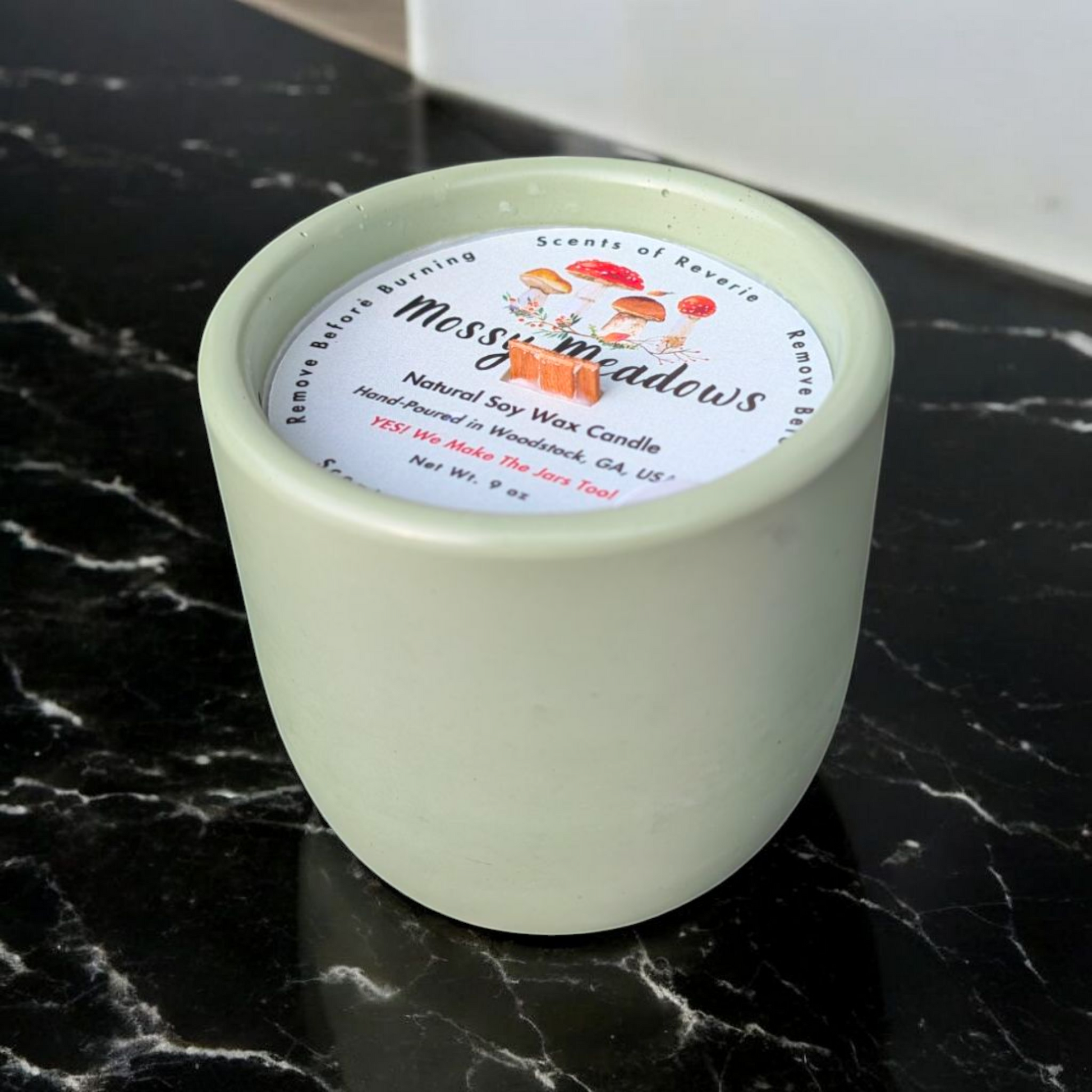 Every Scents of Reverie item is lovingly handcrafted in Kennesaw, GA. As with all handmade products, slight imperfections—like slightly off-center labels/wicks or small markings on the jar—may occur. Rest assured, these do not affect the quality of the candle.